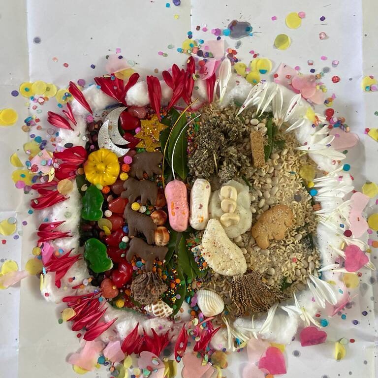 - A few natural elements (such as coca leaves, if available, or small wildflowers, seeds, or grains).